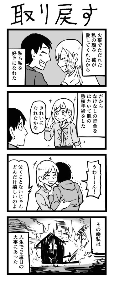 【漫画】やけどを負った顔を愛してくれた彼のため、肌を手術したら? 4コマのオチが怖すぎる!