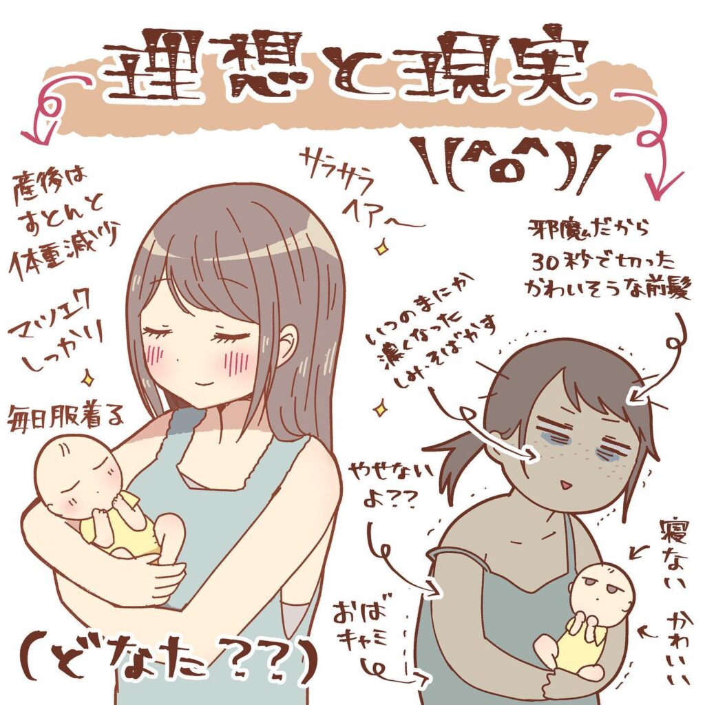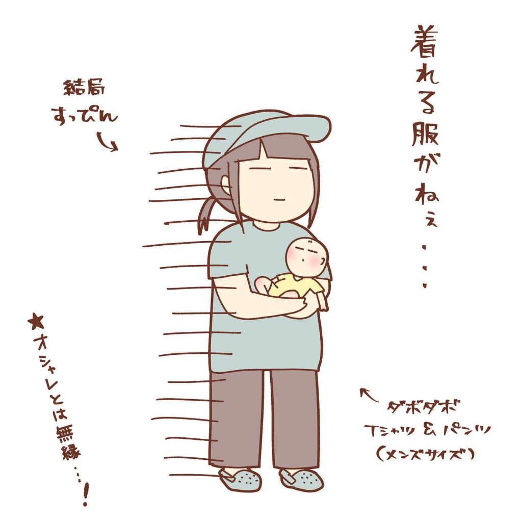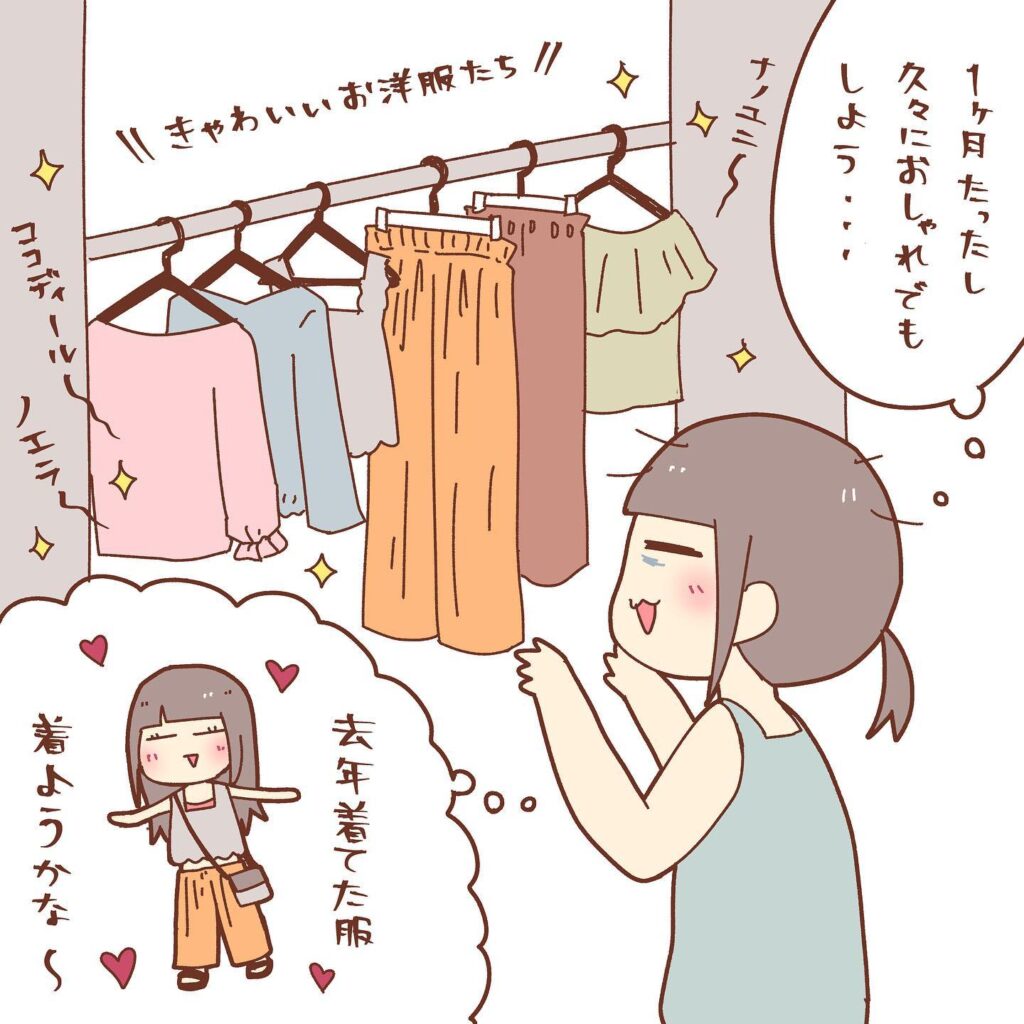 【漫画】産後、久々におしゃれしようと服を着た結果 理想と現実のギャップに「仲間がいた!」「つらいよね」