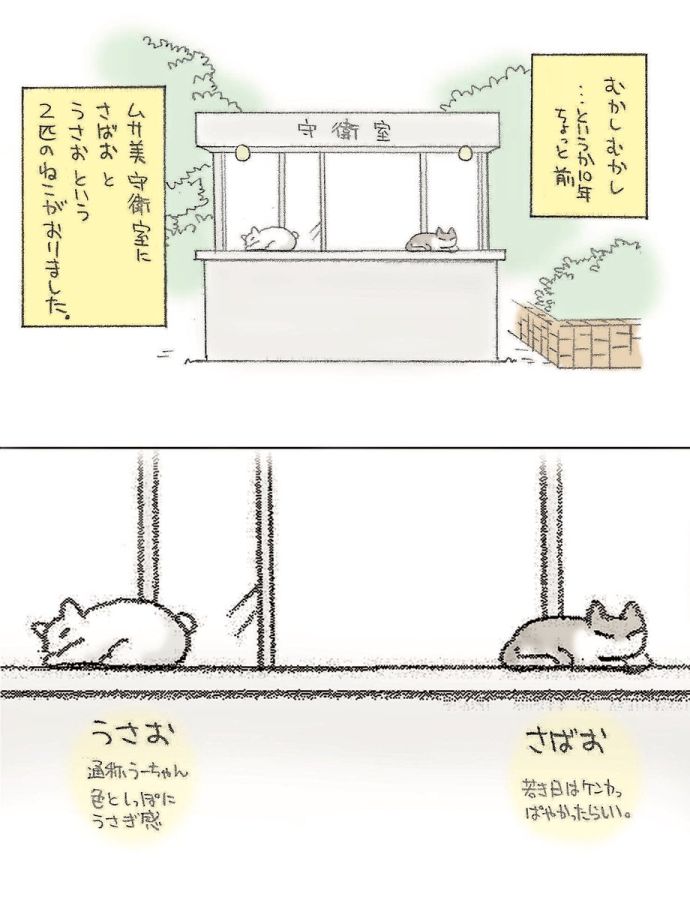 【漫画】大学の守衛室にいた2匹の猫 世代を超えた思い出に「泣いた」「素敵な話」