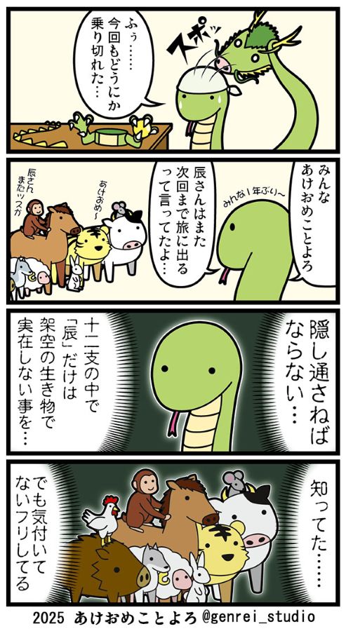 【漫画】干支のなかで“辰と巳”だけが知る秘密とは? 4コマのオチに11万人が「同意」