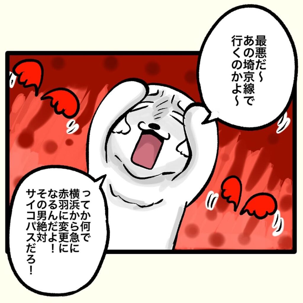 【漫画】チワワの埼京線への偏見がスゴイ(笑) マッチングアプリで出会った彼に会いに「赤羽」へ行く飼い主に全力ディスる!