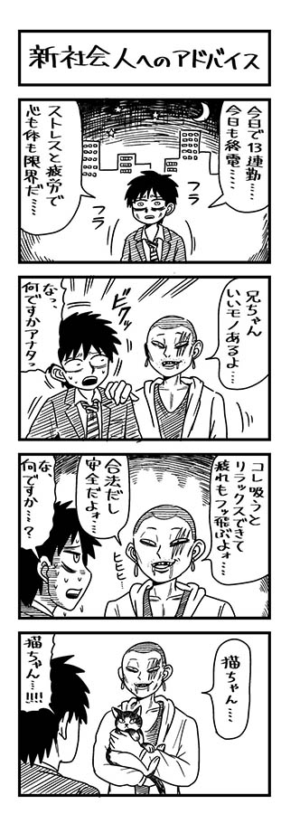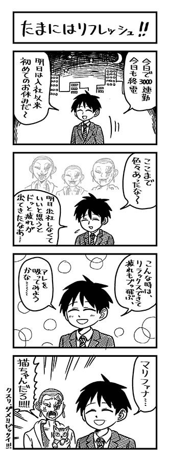 【漫画】怪しい男から「吸うと疲れもフッ飛ぶよ」の売り込み…意外なオチで安心!
