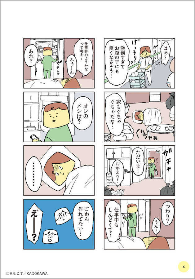 朝起きたら「出産直後の妻」になっていた夫を描くマンガ 下半身が痛くて出血が止まらない…