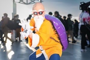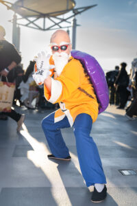 亀仙人のコスプレをした団長さんは昔からの『ドラゴンボール』コスプレイヤー仲間で、会場で偶然会いました。3人で一緒に自撮りをしていたら列が突然出来たので、その場で3人組の『ドラゴンボール』併せになりました。