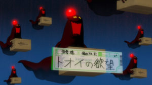 時を同じくして、浅草一帯では「箱」が次々に飛んでいくという謎の現象が。その正体は、普通の人が見ることのできない、人の世の裏側「欲望フィールド」に現れている「ハコゾンビ」の下っ端たちでした。生前満たすことができなかった欲望を満たそうとしているハコゾンビから「箱」を取り返すには、彼の「尻子玉」を抜くしかない! カッパになった3人は、「箱」を取り戻すべくハコゾンビと戦います。