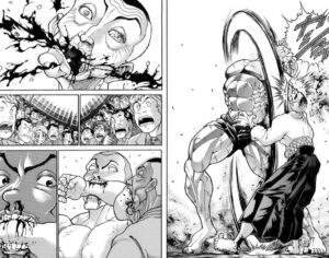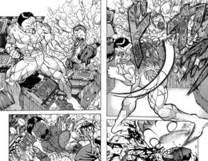 ちなみに、ジャックは5部『バキ道』で得意の噛みつき技を進化させ、「噛道(ごうどう:実際の「噛」の漢字は印刷標準字体の方)」なる自分だけの流派を生み出しました。そして、その独自技術で2代目・野見宿禰に勝利したジャックは、その他の地下闘技場戦士たちに「宣戦布告」を仕掛けています。しかし、その場にも花山はいませんでした。
