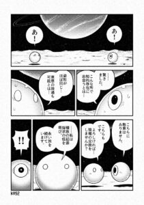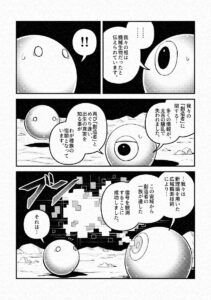 しょうもないオチですが、幸い楽しいと言って下さる方がいらしたので胸を撫でおろしています……。マンガを思いついた経緯ですが、以前、宇宙で生物が進化すると最終的には惑星や恒星のように球体になるのではないかと妄想したことがあり、それをテーマにマンガを描いてみたいと思い、今回描いてみた次第です。