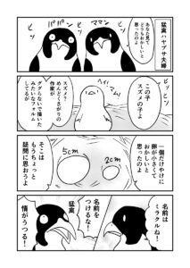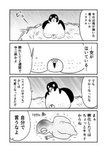 クセの強い個性をもったスズメのヒナに、鋭いツッコミを入れながらも、ハヤブサ夫婦はスズメのヒナの成長を見守ります。次第に愛嬌たっぷりのヒナが愛おしく思えてきて……?