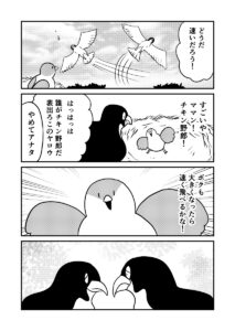 河口けいさん(@kwgc_k)による創作マンガ『生まれたヒナがスズメだったハヤブサの話』がX(旧:Twitter)上で公開されました。いいね数は4.3万を超えており、読者からは「スズメのヒナちゃんたくましすぎ(笑)」「ところどころ人間臭さがあって脳がバグる……。最後はしっかり感動させてもらいました」「シュールなヒナのボケとパパの鋭いツッコミが癖になる! 立派に育ってよかった!」などの声があがっています。