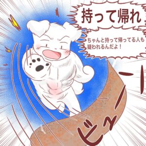 たまに私の散歩コースに大きなウンチが落ちているんです。サイズ感的に同じ飼い主だと推測しています。腹は立ちますが、断定はできないので、どうすることもできないこの鬱憤(うっぷん)をマンガにして晴らすことにしました。