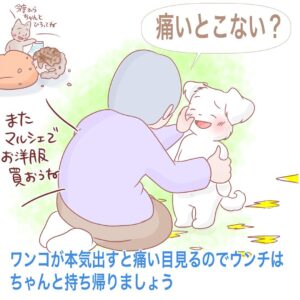 ウンチはかけらまで持って帰りますし、袋は多めに持っていきます。また、よそのおうちの外周りにある花壇付近は迷惑になる可能性があるので近付かないようにしています。「できるだけワンコが嫌われないように」と、いつも心がけていますね。