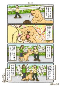 漫画家の8kanchi8さんの実家で飼っている、ゴールデンレトリーバー。誰に対しても友好的である犬種でとても愛くるしい存在です。実際の経験をもとに描いた「あるある」に多くの反響がありました。作者の8kanchi8さんにお話を聞きました。