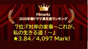 大手レビューサイト「Filmarks」の「2025年春ドラマ 満足度ランキング」の、結果が発表されました。