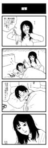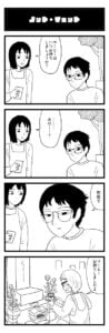 今回のマンガを描いた前日に「1h4d(1時間4コマ会)」という企画に参加したのですが、そのときのお題が「靴下」だったことがきっかけです。靴下=臭いというイメージから、「寝ている彼の顔に悪戯で臭いチーズを近づける」という4コマを以前描いたことを思い出し、「臭いチーズ」を「臭い靴下」に置き換えても、同じネタが描けることに気付き、翌日に今回のマンガを描きました。