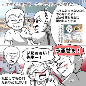 悪口をいわれてカッとなり、つい手が出てしまった男子生徒。担任は罰として、彼をベランダに出してしまいました。その姿を見たある女子生徒は……。読者からは、「小学生とは思えない気遣いと行動力がすばらしい」「この先生は教育者失格!」「男の子も自分の感情のコントロールが出来ず苦しかったんでしょうね」などの声があがっています。