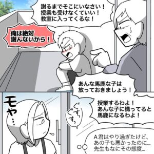 【漫画】追い出された問題児 心配になって様子を見に行くと? 教師の対応に「ムカつく」