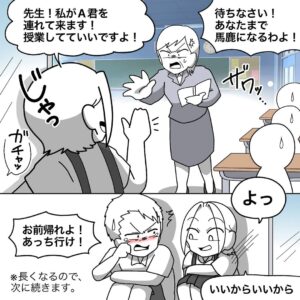 クラスメイトとケンカをして担任に叱られ、ベランダに出されてしまった男子生徒。それを見たある女子生徒が……。Instagramで公開されたマンガが「この先生は教育者失格!」と話題の作者、yamamiiさんにお話を聞きました。