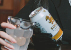 タイ現地仕様のシンハービール: 日本で市販されている缶だと、どうしても日本語の注意書きやリサイクルマークが目に入り、日常感が出てしまいます。作品の舞台(ロアナプラ)の空気感を壊さないよう、タイ現地で販売されているタイ語表記の缶を準備しました。側面のデザインが日本版とは全く違うので、写真に映るほんの一部分ですが、そこまで含めて「レヴィの生きる世界」を表現したいと思っています。