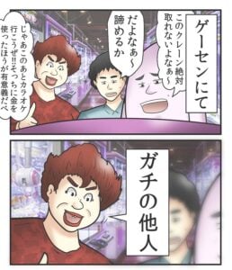 【漫画】ゲーセンで友人と遊んでいたら…2コマのオチに衝撃「ヤバイ人」「怖すぎる」