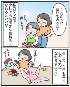 一方で、「無理せず描き続けて下さい」「描けるときで大丈夫ですよ」といった、私や母を気遣って下さる言葉も多く、発信する側と読む側が、どこかで支え合っているような感覚がありました。