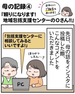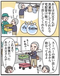 また一方で、私が実家へ行く時間が増え、普段のエッセイマンガが描けない状況になっていることを察して、「ネタにしていいよ」という意味も込めて、「描いていいよ」といってくれたのかもしれません。