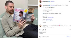 各写真ではヘブンを演じていた頃の自分が載っている雑誌や新聞などを持っており、髭の形も変わっているのがよく分かります。坊主になっているのは、『SHOGUN 将軍』で再び「マルティン・アルヴィト司祭」を演じるからでしょう。