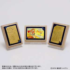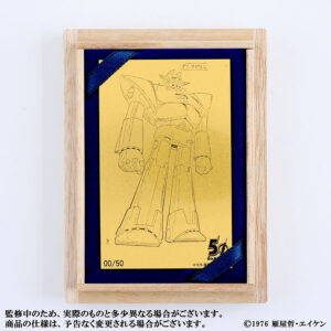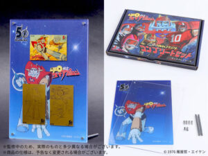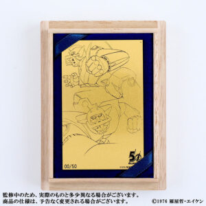 「キービジュアル」「設定資料-1」「設定資料-2」の3種で、50周年記念ロゴとシリアルナンバーが入ったデザインです。カード重量は0.5g、それぞれ40枚限定で、いずれも7万7000円(税込)になります。カード3種のコンプリートセットも10セット限定で発売され、こちらは19万8000円です。よって単品とセットをあわせ、カードは各50枚限定となります。