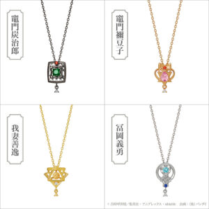 それぞれ、スイングネックレス・リバーシブルコインネックレス・ピアス・イヤーカフの4種類。キャラクターの衣装や持ち物がデザインに取り入れられています。
