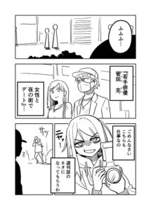 週刊誌の記者が、夜の街で女性とふたりで歩く若手俳優を発見。撮影しようとカメラを構えた記者を見付けて、俳優からは意外な言葉が……。カンケーさんが、Twitterで『深夜テンションで考えた漫画』を公開しました。
