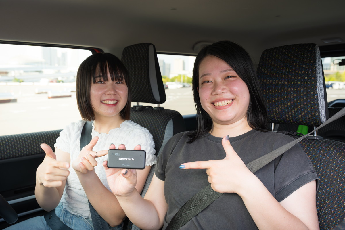実はハスラーには、カロッツェリアのクルマ専用Wi-Fiルーター「DCT-WR200D」を搭載していたのでした。エンジンをONにすると車内はすぐにWi-Fi環境になり、ドコモLTEデータ通信が定額で使いたい放題(走行中と一部停車中)です。容量は無制限なので、みんなで使っても心配いりません。